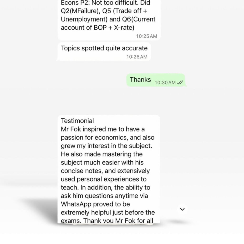This allows his Economics tuition to focus on what examiners are most likely to test, not everything that could be tested.